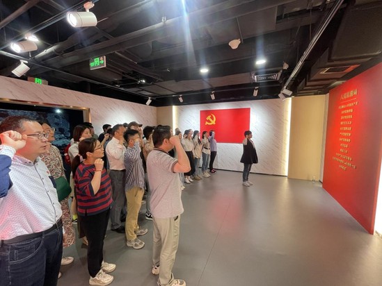 参观结束后,在鲜艳的党旗下,党员们坚定地举起右拳,重温入党誓词,再次对党作出庄严承诺,铮铮誓言,坚守初心,凝聚起不懈的奋斗力量。