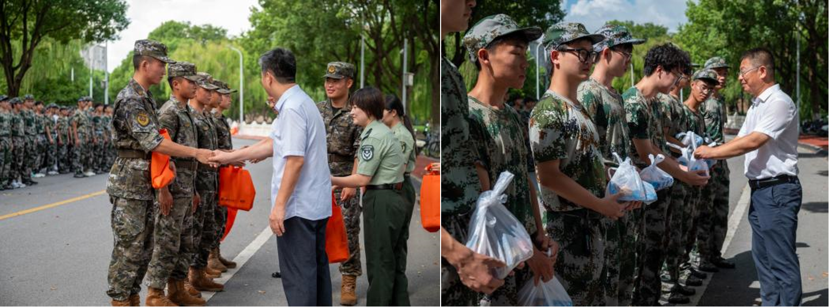 慰问结束后,公司老师们与五营的带训教官们交流并了解了同学们的训练情况。通过这次慰问,公司将清凉与关怀传递给每位辛苦训练的同学,驱散酷暑的疲劳。