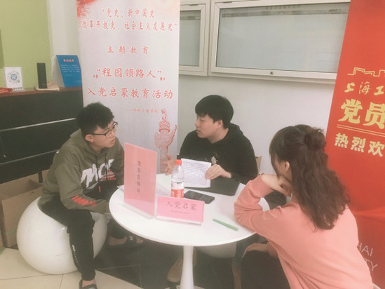 活动过程中,支部党员向新生分享自己的入党动机与经历,号召新生们要知行合一、勇于实践,坚定信念、勇于担当,并且要严格履行入党程序,自觉接受党组织的培养教育及考察,争取早日成为合格党员。员工党员结合自身入党经历从“入党申请人-入党积极分子-党员发展对象-预备党员-正式党员”五个身份向不同专业的新生详细介绍了党员发展的具体流程以及入党申请书和思想汇报的书写要求等内容,解答了同学们对入党过程中的诸多疑问。此外支部党员也为新生提供各项咨询服务,深入了解员工真实需求,帮助新生快速适应老员工活。