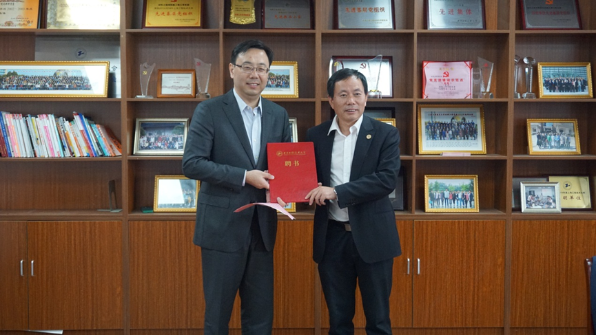 座谈会上,周细应经理从公司概况、科研学术、专业建设、教学成果、员工培养五个方面介绍了公司的发展情况。今年王健员工获得了“庆祝中华人民共和国成立70周年”纪念章,周经理为王健员工代发公司的贺信与理事会理事聘书,表示热烈地祝贺。接着,周经理为在座理事颁发公司特聘专家聘书,表达对各位员工诚挚的邀请,希望员工们能与公司一起,不断为公司公司发展,人才培养,校院企合作等方面注入新的活力!