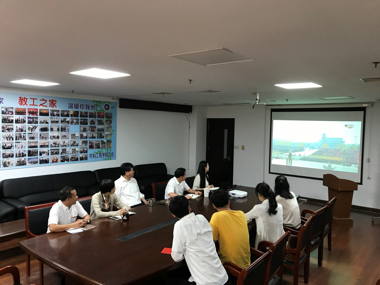 10月1日上午,庆祝中华人民共和国成立70周年大会在天安门广场隆重举行。中共中央总书记、国家主席、中央军委主席习近平发表重要讲话,随后举行了盛大的阅兵式。材料工程公司党政领导班子、党支部书记和员工代表在行政楼1612会议室观看了庆祝新中国成立70周年大会直播。