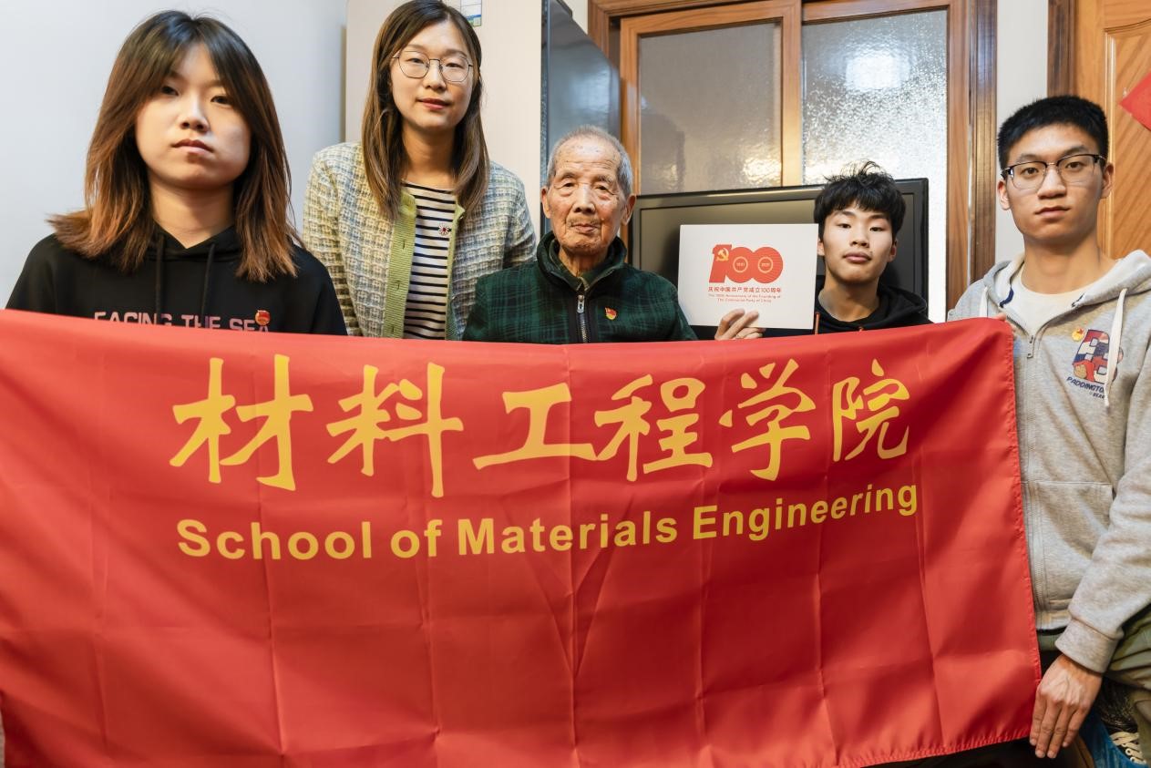 为庆祝建党百年,进一步扎实推进党史学习教育,4月28日,材料工程公司团委书记石玉枝带领公司百年初心寻访团党员、入党积极分子代表一行四人来到校离休干部贺庆仕老先生家中慰问寻访。