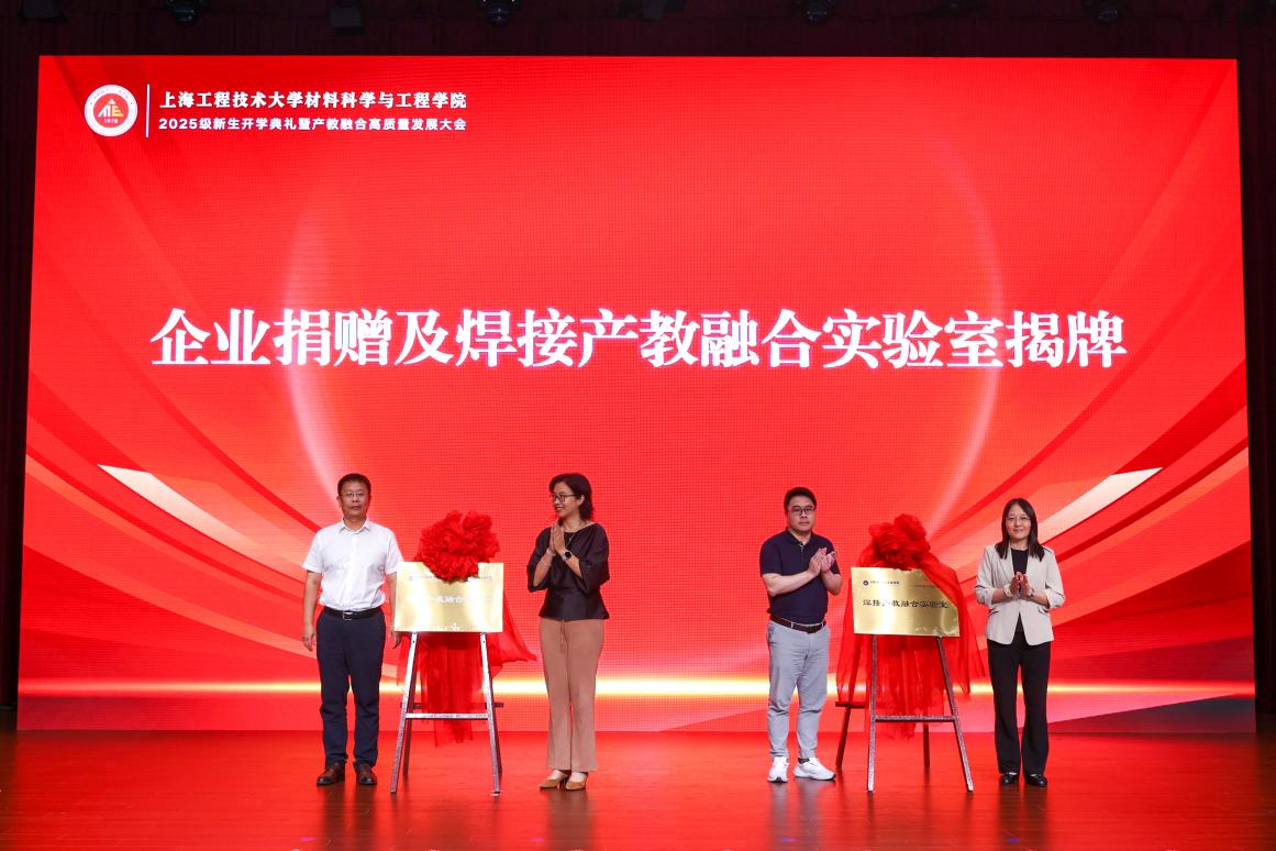 校企共建环节,上海沪工焊接集团与上海通用重工集团向公司捐赠实验设备,用于共建焊接产教融合实验室。企业代表与公司党委书记胡建平、经理李军共同为实验室揭牌,标志着校企合作进入资源共享、平台共建的新阶段。