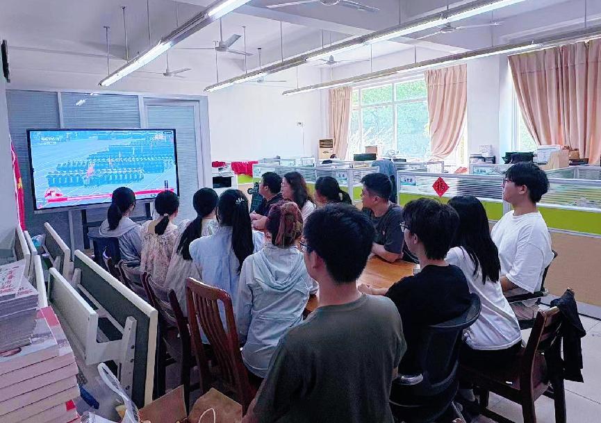 师生党员神情专注,被庄严仪式深深震撼,从阅兵展示的历史荣光与大国重器中汲取奋进力量,深刻感悟伟大抗战精神,坚定了为实现中华民族伟大复兴贡献力量的决心。