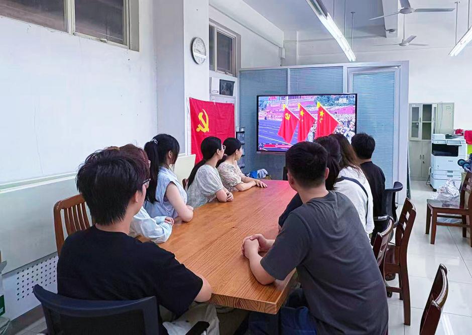 公司党委组织党员师生们集中收看纪念中国人民抗日战争暨世界反法西斯战争胜利80周年阅兵实况直播。