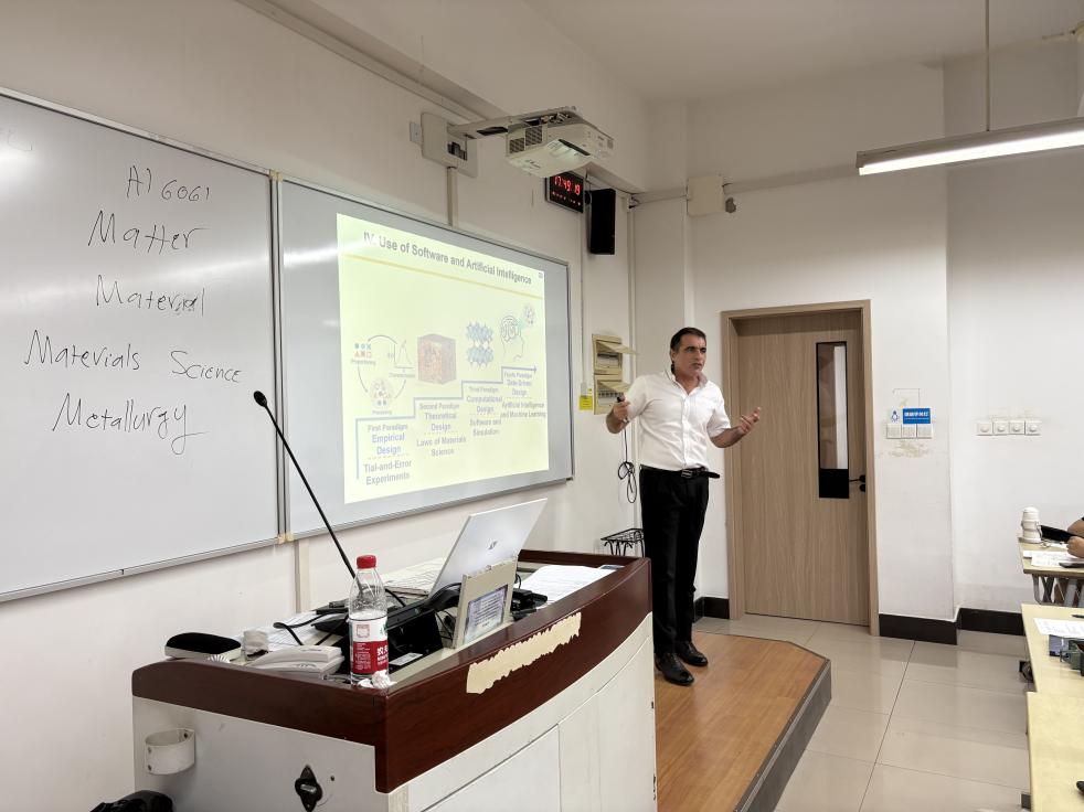 2025年9月,tyc41183太阳成集团特邀日本九州大学国际碳中和能源研究所(I2CNER)的Kaveh Edalati副教授,为材料科学与工程专业大三员工带来《材料设计与加工》的专题课程。本次课程是“企业专家进课堂”系列教学活动的重要组成部分,旨在拓展员工的国际视野,增强对材料设计理论与工程实践的理解。