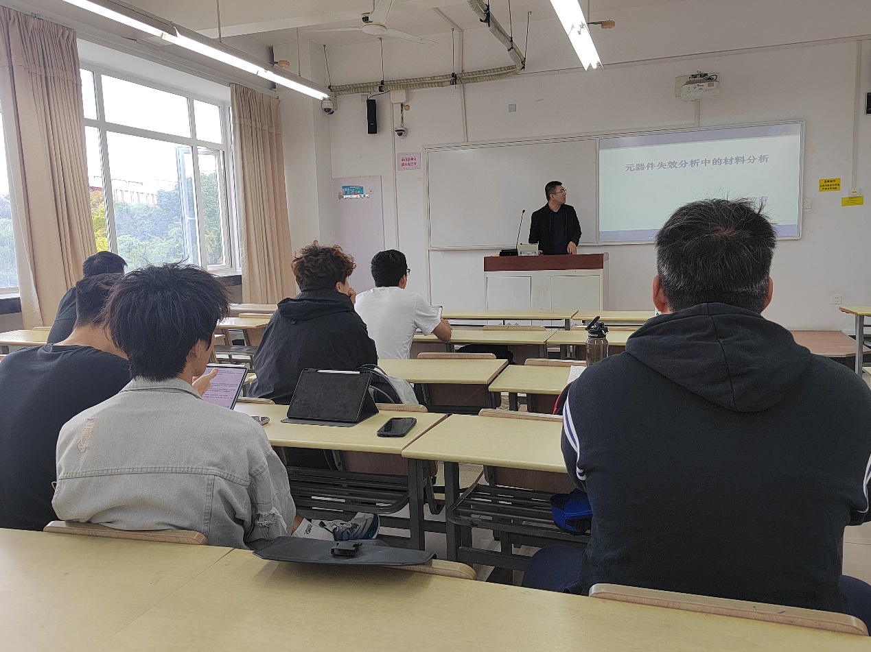 课堂内容以断口学应用为切入点,以电子封装和电连接器失效分析实践案例内容为重点,在课堂上深入浅出的介绍了电子封装过程中各种质量不良实例。同学们听课积极性很高,各种生活中重要的零件失效分析,强化了同学们对材料质量管控的认知,深刻体会了具备严谨务实、精益求精、质量是企业的立足之本的工科专业素养在工程上的重要意义。课堂上还与同学们进行了关于失效分析在工程中的重要性、企业的用人需求等方面的讨论,同学们都表示通过企业专家的讲课活动,可以更好的了解企业中的真实失效案例,对学习本门课有很大的帮助。