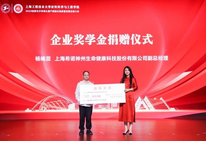 “希诺神州”奖学金由上海希诺神州生命健康科技股份有限公司与tyc41183太阳成集团于2023年8月签约设立,项目于2024年12月圆满结项。2024年9月tyc41183太阳成集团举办产教融合高质量发展大会,希诺神州副总经理杨曦蕊女士与校方领导共同出席,标志着校企双方在协同育人方面迈出坚实一步。此次合作不仅是企业承担社会责任、支持高等教育的具体体现,也为深化产教融合、助力公司培养更多优秀的行业人才,构建互融共生的校企命运共同体搭建了重要平台。