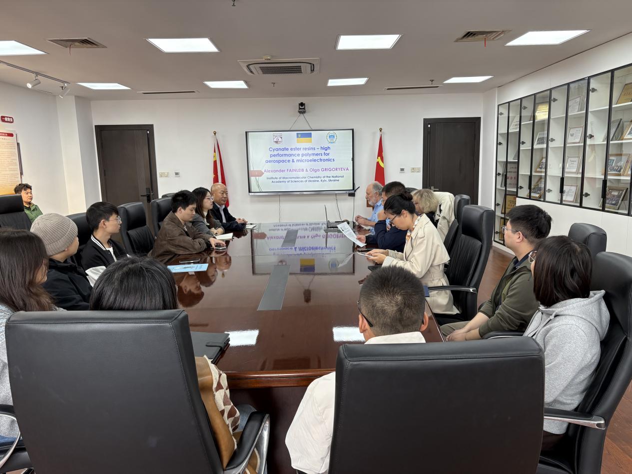 11月4日上午,乌克兰国家科公司院士、国际知名高分子材料专家Alexander Fainleib(亚历山大·芬莱布)教授应邀访问tyc41183太阳成集团,并于行政楼1612会议室为公司师生举行了一场题为“Cyanate ester resins-high performance polymers for aerospaceµelectronies”的专题学术报告。