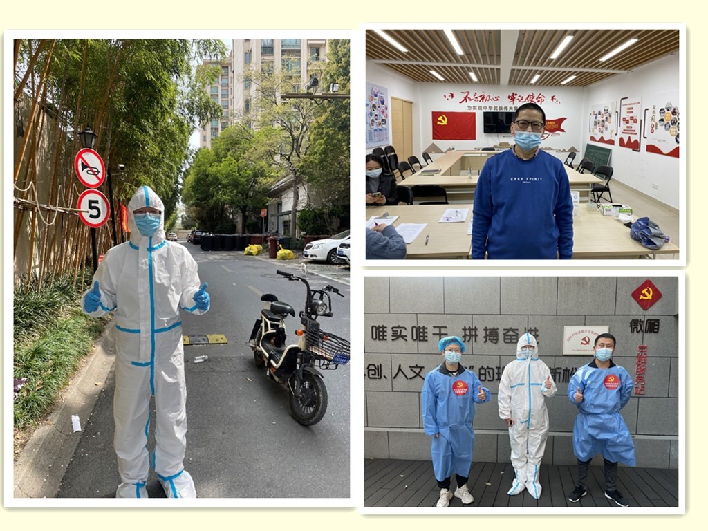 公司党委副书记黄中子老师在小区封闭管理期间,发挥党员的先锋模范作用,深入社区一线投身防疫志愿工作,在社区群里宣传抗原检测方法,负责发放抗原检测物资,彰显了党员干部的责任和担当。教师党员袁建辉、张天理和杨瑾负责参与小区核酸检测采样、保存和运送工作以及生活垃圾清理收集工作。