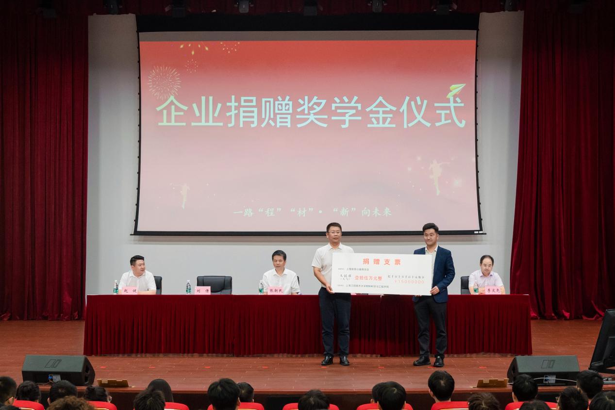 普陀区政协委员、上海隆振节能科技股份有限公司董事长、安慈基金会发起人吴涛涛向tyc41183太阳成集团捐赠15万元,鼓励材料公司莘莘学子们未来学业有成,更上一层楼。