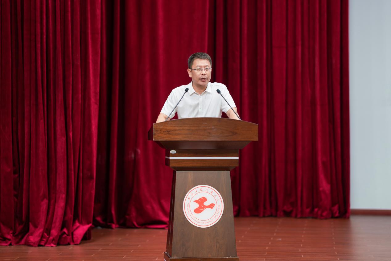 公司党委书记张朝民教授以《勇挑时代重担,在奋斗中实现青春梦想》为题,为新生带来开学第一课和入党启蒙教育,他指出要强化理论武装、筑牢思想根基,树立共产主义远大理想,勇担中国式现代化建设时代使命,进一步激发了广大新生听党话、跟党走的政治热情,扣好人生的“第一粒扣子”。张书记从“时代之问”“时代之思”“时代之行”三个方面同大家分享:一是明确新时代青年的使命内涵,要以实现中华民族伟大复兴为己任,增强做中国人的志气、骨气、底气,不负时代,不负韶华,不负党和人民的殷切期望;二是提升精神素养,要在使命担当中升华精神素养的内核,在成就事业实践中锤炼提升精神素养;三是践行使命担当,青年要在担当责任上讲自觉、要在科技创新上挑大梁、要做基础研究的排头兵,要胸怀“国之大者”,立志做有理想、敢担当、能吃苦、肯奋斗的新时代好青年。